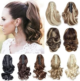Queue de Cheval Extension Synthetique Postiche Claw on Ponytail Extension Synthétiques Cheveux Fibre Ondulé Bouclés 45cm Bleach Blond