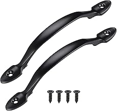 JIZZU 2Pcs Poignée de Traction de Porte Noir avec Vis, Poignee de Porte Interieur en Acier Inox, Poignée de Porte d’Armoire, Poignée de Hangar, Poignee de Porte de Garage, Porte de Jardin en Bois