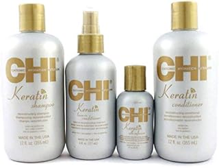 CHI Strengthen and Revive On The Go Styling Kit Unisex 2oz Keratin Shampoo, 2oz Keratin Conditioner, 2oz Keratin Leave-In Conditioner, 2.6oz Keratin Flex Finish Hair Spray 4 Pc Brand: CHI 618 ratings | 3 answered questions Amazon's Choice in Shampoo & Conditioner Sets by CHI Promotes long-lasting, healthier hair Adds shine and elasticity - CHI Silk Infusion Silk Reconstructing Complex is a rich leave-in treatment enriched with silk, wheat, and soy proteins that will penetrate and help strengthen the hair, providing incredible softness, manageability and shine without build up. Key Benefits: - Adds moisture and shine - Leave-in alcohol free reconstructing treatment