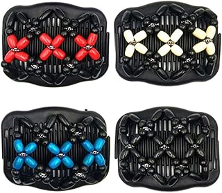 Peignes de Cheveux Perles Élastiques Magiques Peignes de Cheveux Extensible Double Clips Pinces à Cheveux Accessoires de Cheveux pour Femmes Accessoires de Cheveux de Filles 4 Pcs
