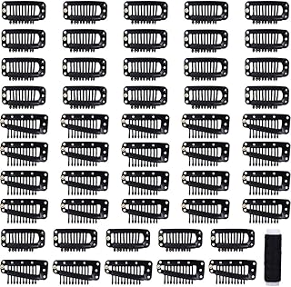 50 Pinces à perruque Clips en acier inoxydable 9 dents et 10 dents Pinces à peigne pour les extensions de cheveux, Noir