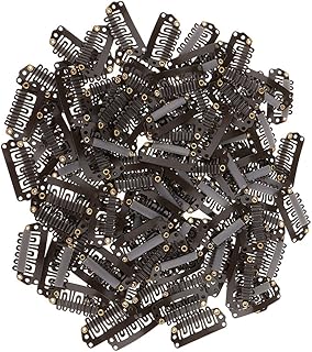 Liwein 100 Pièces Clips de Perruque 3,2 cm Snap Clips en Métal Forme de U Clips de Peignes 6 Dents Pinces à Peigne pour Extensions de Cheveux DIY Brun Noir