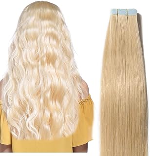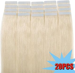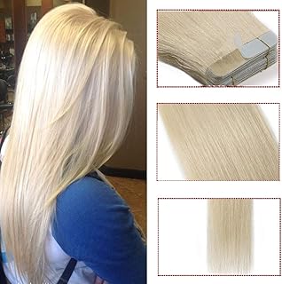 Extension Adhesive Naturel 40 Pcs Bande Adhésive Rajout Cheveux Adhésif 100% Cheveux Humains Naturels Remy Hair (#60 Blond platine, 40cm)