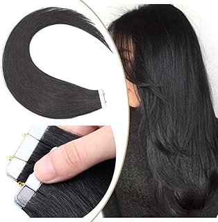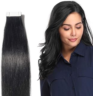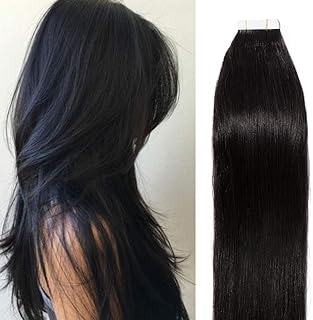 40 Pcs Extension Adhesive Naturel Cheveux Bande Adhésive Ruban Adhésif - Rajout Extensions Cheveux Humains Naturels Remy Hair (#1B Noir Naturel, 50cm)
