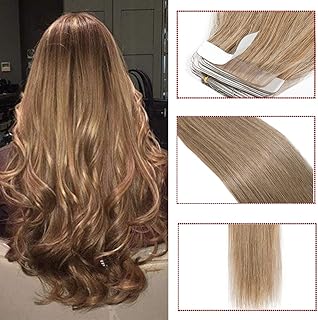 40 Pcs Extension Adhesive Naturel Cheveux Bande Adhésive Ruban Adhésif - Rajout Extensions Cheveux Humains Naturels Remy Hair (#27 Blond foncé, 50cm)