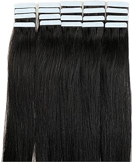 Extension Adhesive Naturel Cheveux Bande Adhésive Ruban Adhésif 20pcs - Rajout Extensions Cheveux Humains Naturels (#01 Noir, 40cm)
