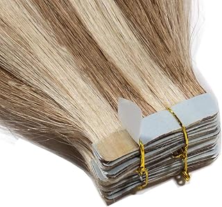 Extension Adhesive Naturel 20PCS - Rajout Bande Adhesive Extension Cheveux Naturel Adhesif Cheveux Humain Remy Hair - #18/613 Blond cendré méché Blond blanchi - 18 Pouces(45cm)