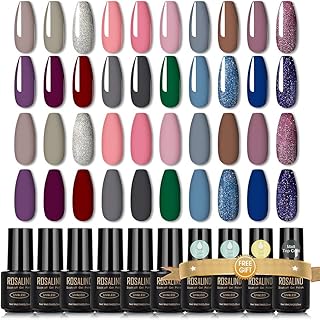 ROSALIND Vernis Semi Permanent Rose 20 Coloré Soak Off Gel Polish Couleur Flash Poudre Bleu Gris Rouge Vernis a Ongles Semi Permanent et Base et Top Coat Avec une Couche de Finition Matte 24 pcs 7ml