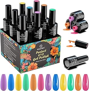 Vernis Semi Permanent, Kastiny 9PCS Arc En Ciel D'été Vernis à Ongles Gels Semi-Permanents Lot 7.5ml, avec Primer Vernis Gel, UV LED Nail Polish