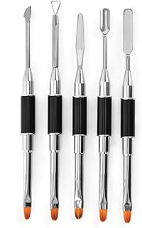 2 in 1 Pinceau Nail Art Ongles, Anself 5 Pcs Extension Gel Spatule à Double Extrémité et Pinceau Manucure Outil Nail Art Brosse Stylo Acrylique UV Builder Gel Ongles Extension Brosse Ensemble