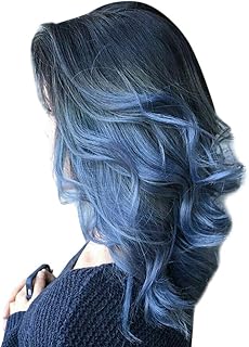 Posional Perruque Blonde Platine Bleu, Perruque Synthétique Longue Bouclée et Ondulée Racines Foncées pour Femme Perruque en Soie Haute Température avec Raie Au Milieu, Style Hippie, Super Sexy