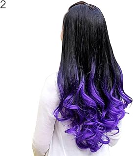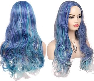 Mixte Bleu Vert Violet Perruque Longue Bouclée Ondulée Colorée Perruque Synthétique de Cheveux pour Femme Halloween Cosplay Partie Milieu Séparation 27.5 Pouce