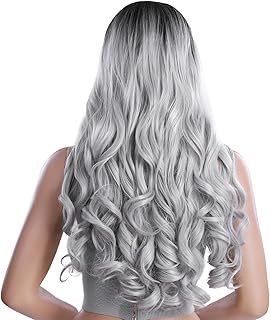 SONGMICS Perruque noir gris gradient de 66 cm Avec raie au milieu Longue Bouclée Cheveaux synthétique Perruque femme WWG02BG