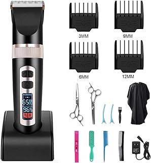 Tondeuse Cheveux Hommes Sans Fil Professionnelle Tondeuse à Cheveux Tondeuse Barbe Rechargeable avec Ecran LCD et 4 Sabots pour Enfants Adultes Domicile ou Coiffeur