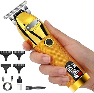 Tondeuse Cheveux Hommes,Tondeuse Barbe Electriques Professionnelle, Sans Fil Tondeuse à Cheveux Rasoir Barbe Tondeuse Kit,Écran à LED, Rechargeable, Silencieuse pour les Enfants et la Famille (Doré)