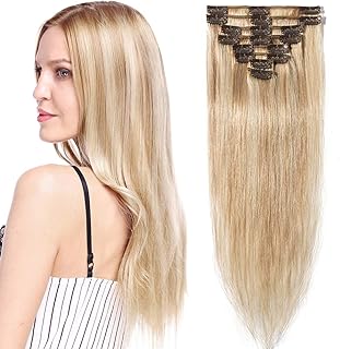 Hetto Clip Cheveux Blond Lisse Vrai Cheveux Blond Foncé Cendré Mixte Blond Clair Clip Extension Double Trame Extension Clip Cheveux Naturel Lisse 22 Pouces 7 Pièces 100g par Paquet