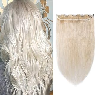 Silk-co Extension A Clip Cheveux Naturel Une Pièce 5 Clips Lisse Rajout Cheveux Invisible Epaisseur Moyenne Cheveux Humains Naturel 8 Pouces,60 Blond Platine