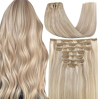 YoungSee Extension a Clip Cheveux Naturel Remy Human Hair #18/613 Rajout Cheveux Clip Naturel Blond Extension Clip Blond Naturel Blond Cendré mixte Bleach Blond 7pcs/100g 24 Pouces
