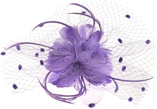 Femme Serre-tête Décor de Filet Fleur Plume Chapeau Bibi Elégant Coiffures pour Déguisement Cosplay Bal Mariage - Violet, 7,09 x 5,51 x 3.15inch