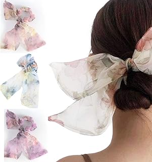 yyuezhi Foulard en Mousseline de Soie Élastiques à Cheveux Porte Queue de Cheval Élastiques à Cheveux Fleur Foulard Cheveux Chouchous Bowknot Élastiqu Mousseline De Soie Bowknot Chouchous Vintage 4Pcs