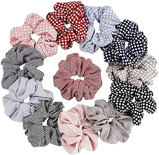 AeeKing 12Pcs Rubans De Cheveux en Mousseline De Soie Point De Vague Rayé Vintage Élastiques Mousseline De Soie Cheveux Chouchous Floral Élastiques Bandes Titulaire De La Queue Haute Qualité