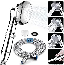 Pommeau Douche + 2 M Tuyau de Douche Flexible, ACGAM Pommeau de Douche avec Tuyau, 5 Modes Economiseur d'eau et bouton de l'interrupteur, Haute Pression Douchette Pommeau Acier Inoxydable