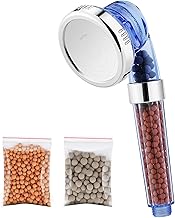 Sooair Pommeau Douche Anti Calcaire, 3 Modes Pommeau Douche Haute Pression avec Billes Minerales Remplaçable, Pommeau de Douche Economiseur D'eau Eco Pommeau Douche Spa - bleu