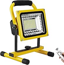 Projecteur de Chantier à LED Sans Fil, Lampe de Travail Rechargeable Portable, Spot LED de Chantier avec Batterie, 500W 8000LM Mode SOS, D'urgence 2,1 A Chargement Rapide, 6 Modes, Télécommande
